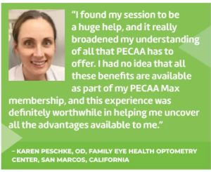 To guarantee you are leveraging all the PECAA Max membership benefits that make sense for your practice, we suggest attending a benefits refresher at least once a year. “We listen to the needs of our members, and, in turn, PECAA’s portfolio of services continues to grow. Scheduling a Benefits Refresher once a year can help you determine which new services are a fit for your practice,” says Schmitt.